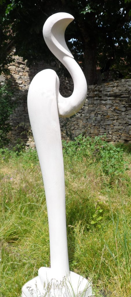 Dans le jardin du château de Flamarens, les œuvres de Patrick Schlumberger s’inscrivent avec une évidence presque silencieuse. Elles dialoguent avec la pierre, les arbres, la lumière et le temps long du lieu, comme si elles avaient toujours attendu cet espace pour se déployer pleinement.