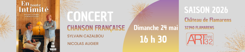 Ce concert est avant tout une rencontre. Une invitation à écouter autrement, à se laisser toucher par la simplicité des mots et la chaleur des mélodies. Dans l’écrin du Château de Flamarens, En toute intimité promet un moment privilégié, à partager de près, où la chanson française retrouve toute sa force d’émotion et d’authenticité.